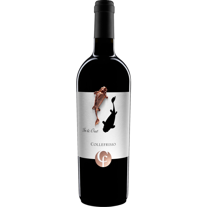 In&Out is a pure Montepulciano d'Abruzzo, a lively and dynamic wine, initially designed for the Asian market but which has achieved great success in all markets thanks to its excellent quality/price ratio. After fermentation and a long maceration on the skins, the finished wine rests first in barriques for 2 years and then for a further 10 months in the bottle. The original label with the three-dimensional golden carp is a symbol of positivity.